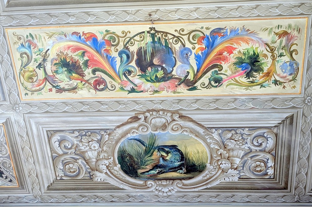 Ak navštívite múzeum, nezabudnite sa pozrieť aj na bohatú výzdobu stropu. Kto prvý nájde krokodýla?