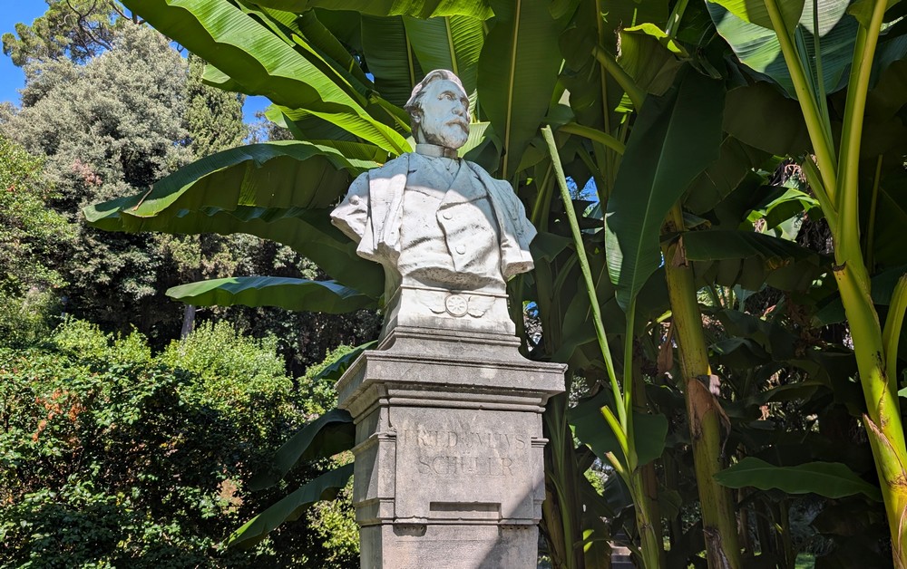 Keď Scarpa začal do svojej vily pozývať významných hostí, čoskoro o toto miesto prejavila záujem Južná železničná spoločnosť. Busta medzi banánovníkmi v parku je venovaná generálnemu riaditeľovi spoločnosti Friedrichovi Schülerovi.