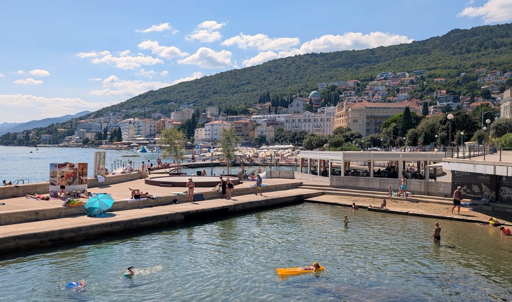 Dnes sa môžete opaľovať na pláži Slatina, najväčšej v Opatiji, s betónovým povrchom a takmer žiadnym prirodzeným tieňom. Človeku sa ani nechce veriť, že ešte pred 150 rokmi sa tu nachádzala len vlhká a zapáchajúca práčovňa a stajne pre hostí hotela Kvarner.