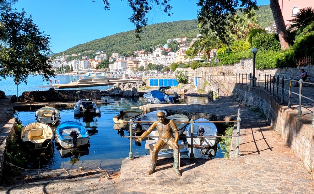 Staré stromy poskytujú chladivý tieň a lavičky zas krásne výhľady na zátoky. Morské vlny oblizujú skaly a prinášajú so sebou staré príbehy, keď tu ešte žili najmä pastieri a roľníci a takmer nikto nevedel plávať ani riadiť loď. Musela sa vymeniť celá jedna generácia, kým miestni obyvatelia pochopili, že sa dá na živobytie zarobiť aj menej namáhavým spôsobom, a nie iba drinou s motykou na poli. Prievozníkov (barkajolo), ktorí okrem tovaru začali na svojich člnoch prevážať aj kúpeľných hostí, pripomína bronzová socha v malom prístave Portič.