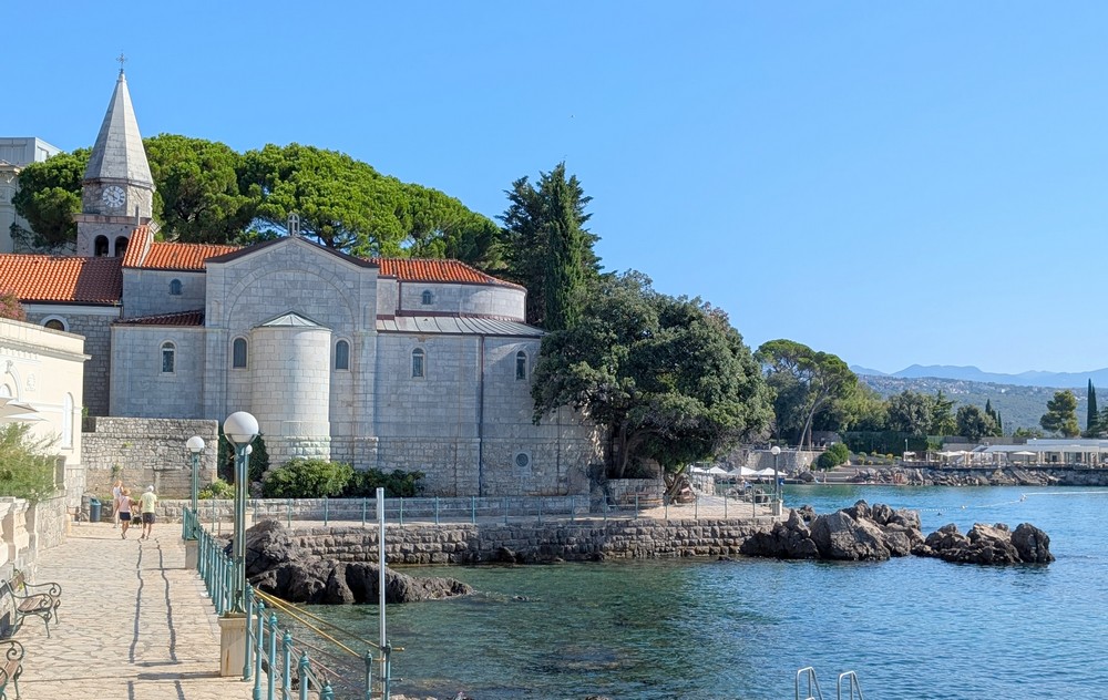 Jedným z prvých miest, ktoré som v Opatiji navštívila, bol Kostol sv. Jakuba, postavený okolo roku 1420 benediktínskymi mníchmi. Ich kolónia dala názov mestu – nielen v chorvátčine, ale aj v taliančine abbazia = opátstvo.